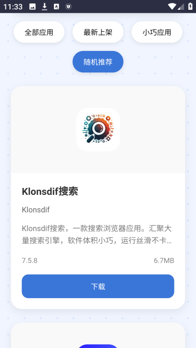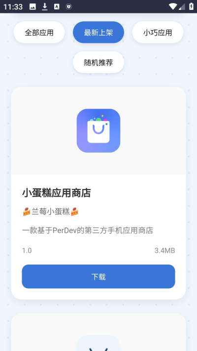 一款手机应用商店app,在本站下载安装小蛋糕应用商店,打开进入软件,在首页可以筛选最新上架,小巧应用,随机推荐等多个板块的资源。