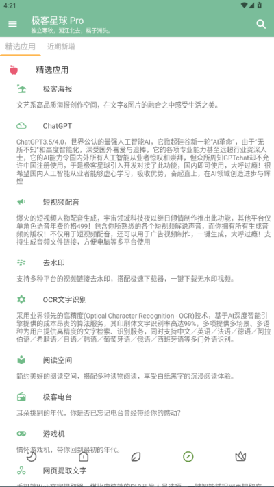 4、以及一些精选应用推荐,如ChatGPT,短视频配音等;