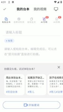 1、智能悬浮提词器:作为软件核心亮点,搭载自研专利智能提词技术,提词节奏可跟随用户语速变化,支持加词、跳词灵活调整,彻底解决忘词问题。同时提供悬浮提词(含 AI 与匀速双模式),可搭配任意拍摄 App 使用,还支持专业相机(摄像机、单反、微单等)连接,实现全场景 “提词自由”。