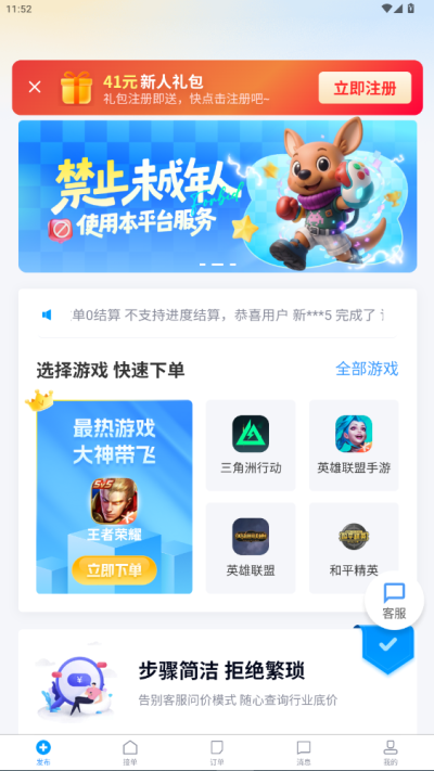 2、首页可以看到涵盖了大量的游戏类型,不需要担心没有订单;