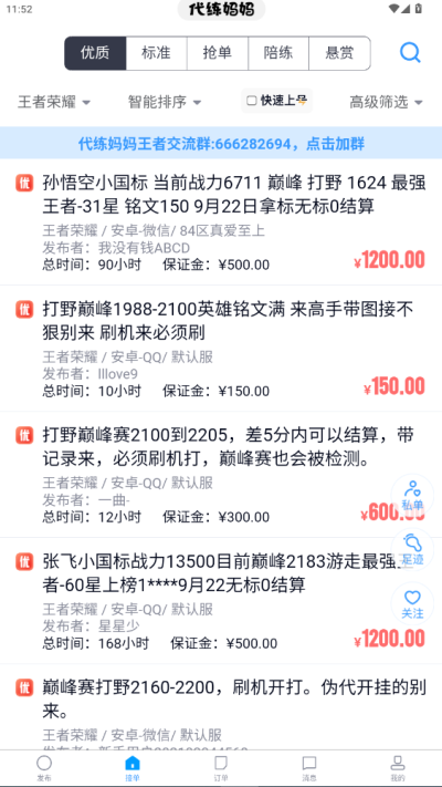 1、高效便捷的下单与接单:玩家可一键发布代练任务,50 万职业代练实时响应;打手能一键承接海量订单,无需复杂操作,无论是发单还是接单,都能快速完成,大幅节省时间成本,实现 “省时又省电” 的高效体验。