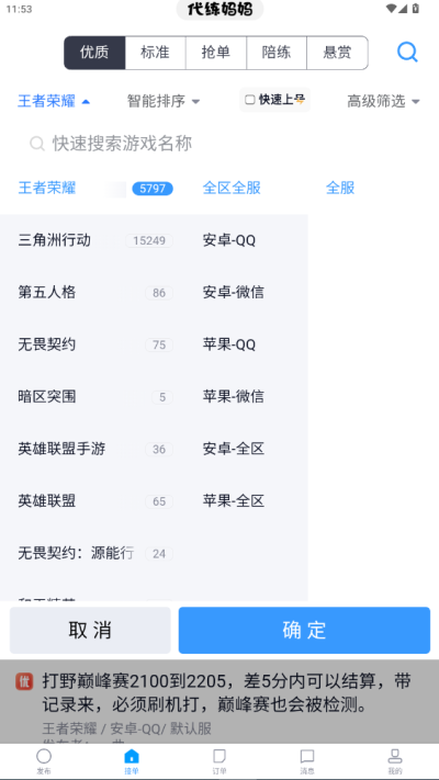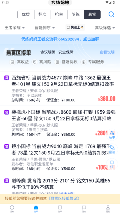 4、海量订单与玩家匹配:平台汇聚各大热门游戏的代练需求,玩家能快速找到匹配的职业打手,打手也能自由选择心仪的订单,50 万职业代练资源与海量玩家需求形成高效匹配,满足不同用户的多样化需求。