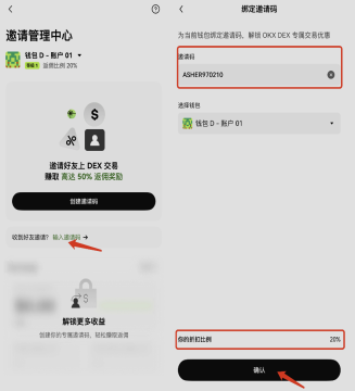 首先可以添加邀请码 ASHER970210,手续费减免 20%,操作示意图如下: