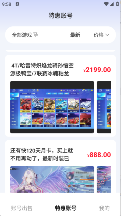 省氪手游宝app是一款安卓手机游戏盒子软件,内含超多优质游戏账号资源,需要高质量游戏账号的用户可以在线进行选购,新人登陆还可以领取超值优惠券福利,使用起来非常方便,对游戏感兴趣的话不妨点击下载试试!