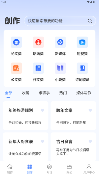 支持多种写作模式(如新闻报道、评论、科技资讯等),内置海量模板库与资料搜索工具,还能提供行业术语库辅助专业写作,无论是日常文案、专业资讯还是学术内容,都能找到适配功能,适用范围几乎覆盖所有文本创作。