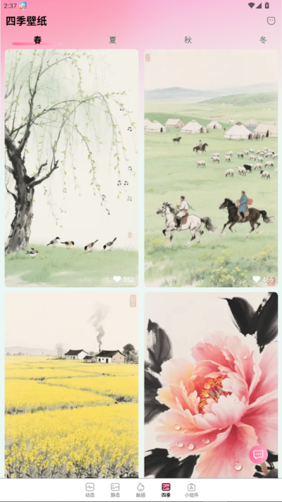 紧跟壁纸流行趋势,包含各种热门风格(如 ins 风、极简风、国潮风等),无论用户偏好哪种风格,都能在软件中找到对应壁纸,轻松打造符合个人审美的桌面。