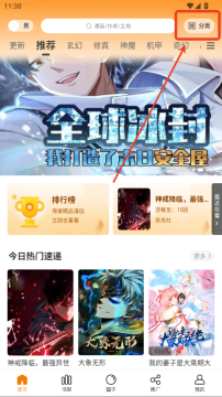 2.点击分类菜单,根据您的兴趣选择不同的漫画类型,如热血、冒险、恋爱等。