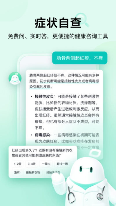 1、健康咨询个性化:无需排队挂号,随时随地发起健康咨询,软件会主动收集症状持续时间、过敏史等关键信息,结合用户个体情况生成全面、精准的个性化解答,覆盖疾病自查、用药参考、健康建议等场景。