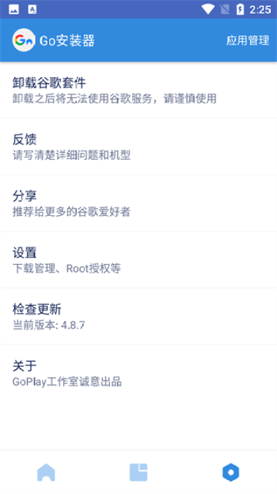方便好用的go谷歌安装器,不ROOT也能搞定谷歌!一键安装谷歌框架、谷歌服务、google play谷歌商店,一键登录谷歌账号,玩游戏不再闪退,用谷歌市场不再纠结。首先支持安卓7.0、7.1、8.0、9.0的谷歌安装器,检测谷歌网络情况,全面解决谷歌问题。