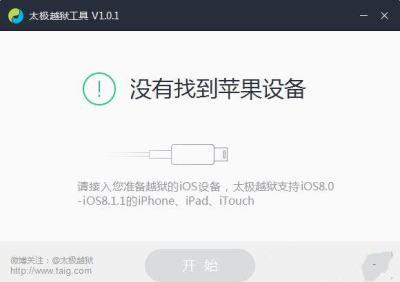1、打开太极越狱工具后连接苹果设备;