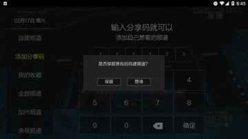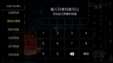 4.同时我们在菜单栏可以通过添加分享码来自己创建一个电视频道