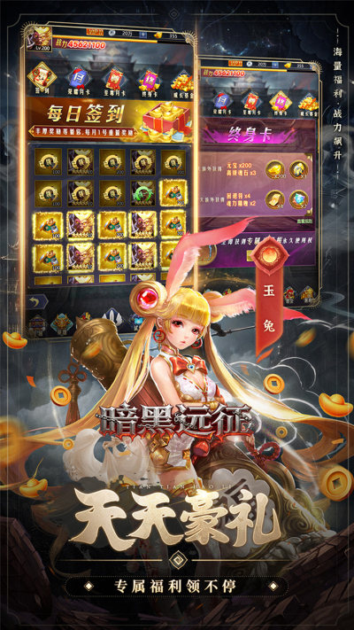 暗黑远征0.1折七十二变福利版是一款以经典西游为背景的回合制策略卡牌手游,融合“魂系英雄自由组合”“全屏特效战斗”“仙侣神器养成”等创新玩法,带你重返500年前齐天大圣大闹天宫的传奇世界!游戏以0.1折超低充值比例(1元=10游戏币)打破付费门槛,创角即送百连抽、无限红包、VIP4特权,十天登录免费领千元点券!在这里,玩家将化身“降龙使者”,招募百变魂系英雄,锻造逆天神器,与仙友跨服争霸,一战封神登顶西游之巅!