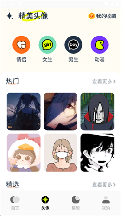 4、也可以在头像页面挑选喜欢的头像,有情侣头像,动漫头像等
