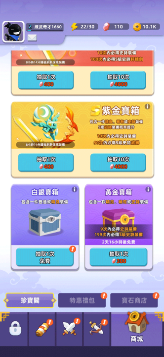 2、随机触发的武林绝学和武器加成(如屠龙刀、金箍棒)增添惊喜感,提供刀、剑、棍等5种武器形态,每种附加能力不同。