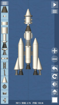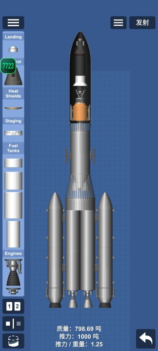5、在鹰发动机下面的隔离器下方放一个长燃料箱和中燃料箱,在*下面加上鹰发动机;
