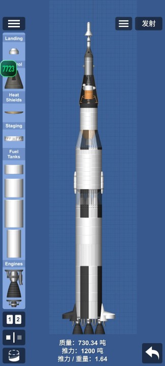 1、首先利用各种零件设计建造我们的火箭,如图所示;