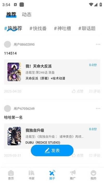 3、弹幕互动与社区交流:支持实时发送/屏蔽弹幕,可自定义字体、颜色与速度,参与剧情吐槽与玩梗互动;内置评分系统与漫评专区,用户可分享阅读感受并参与话题讨论。
