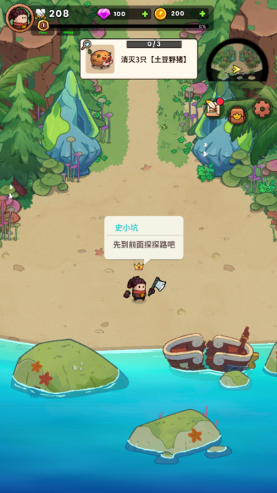 1、进入游戏,开始是教学接任务,滑动屏幕,史小坑就能移动。
