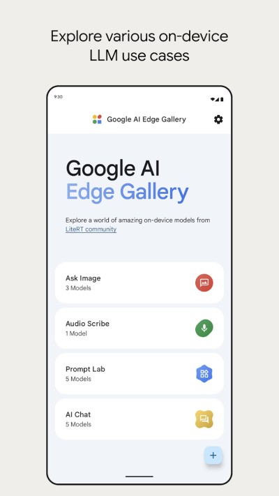 谷歌ai人工智能平台(Edge Gallery),一个展示设备端机器学习/GenAI 用例的图库,允许用户在本地试用和使用模型。