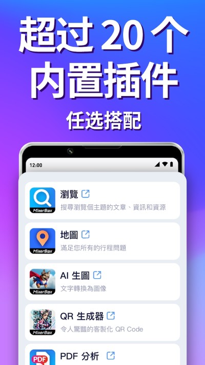 MixerBox AI官方安卓版是全球首款集成繁体中文版ChatGPT的智能浏览器,将AI对话、网页搜索、隐私保护与高效浏览完美融合。用户无需注册即可免费使用GPT-4级AI聊天、20+实用外挂工具(如地图规划、新闻整合、AI生图),同时享受零追踪的隐私浏览体验。专为追求效率、创意与安全性的用户设计,重新定义移动端上网方式。