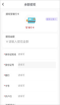 4、然后进入“余额提现”,输入相关绑定的卡号信息即可。