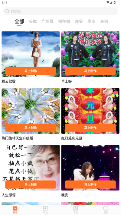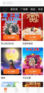 1、海量模板一键生成:拥有上万款覆盖多场景的视频模板,无论是广场舞视频、早安晚安问候视频,还是表白视频、形象照视频,用户只需选择心仪模板,点击 “一键制作” 即可快速生成完整视频,无需手动剪辑、配乐、添加特效,极大降低制作门槛,节省时间成本。