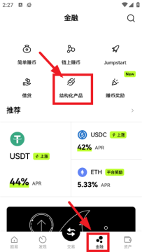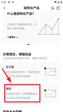 1、打开o意交易所App,底部导航选择【金融】进入金融页面,点击【结构化产品】后,选择【海鸥】