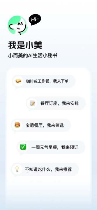 智能推荐:根据用户的口味和偏好,小美AI能智能推荐美食和餐厅,让用户每次选择都更加合心。