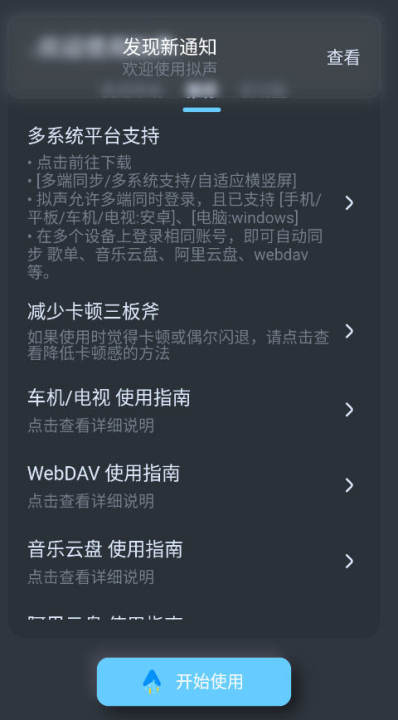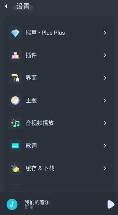 3、开启plus功能之后,你将可以用拟声的插件系统,里面有很多扩展功能可以使用,如:支持阿里云盘、百度云盘、webdav、哔哩哔哩歌曲、音效等功能。