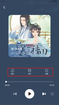 4、进入播放页,还能选择听书倍速、定时或者收藏书籍。