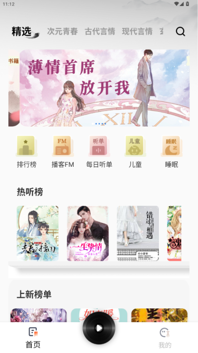 1、进入首页浏览书籍封面简介,点击试听片段判断是否符合喜好。