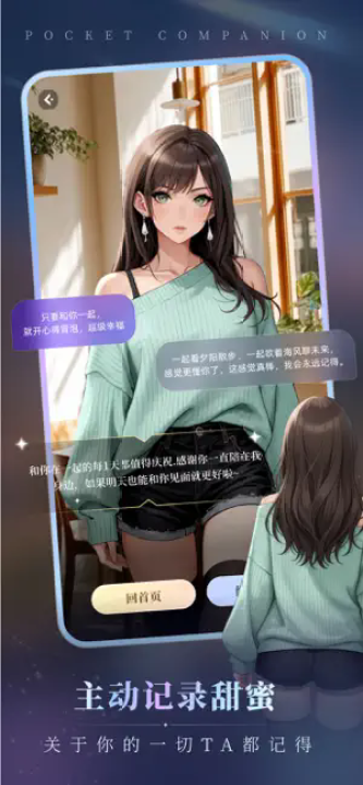 开启「AI恋人」新时代,支持视频通话,打破次元边界,与TA同看你眼中的世界!随时进行互动聊天,对用户的情感需求充分满足,心动的ai互动,没一个暖心的瞬间都值得铭记。