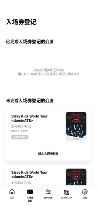 - 输入入场券信息完成登记,即可让应援棒在Stray Kids公演时自动跟随舞台表演运行。