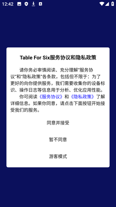 Table for six软件是一款风靡全国的六人社交约会软件,广大用户可以在线注册登录个人账号,随时随地参与六人配对约会体验,自定义即可选择你的个性化话题内容,对软件感兴趣的话不妨点击下载试试!