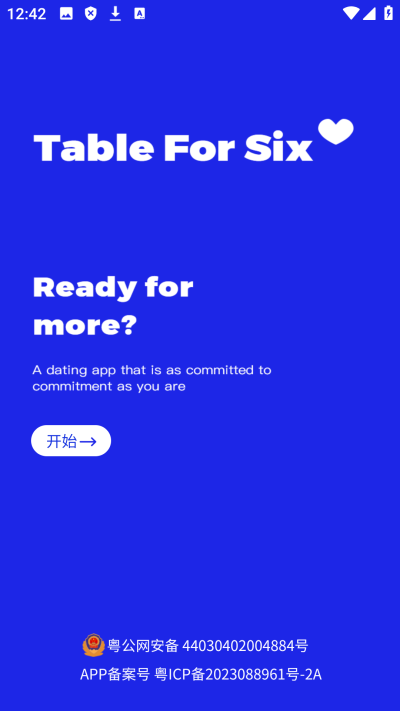 Table for six 是一款六人模式的社交约会APP,告别单独约会的紧张与尴尬,不再担心约会无话可说而冷场,集休闲、社交与一体,为您节约时间成本,6人配对,下一秒就能在dating event里找到共同兴趣爱好的人一起去打球、party...更有新颖有趣的chat room 配对游戏等你来撩。