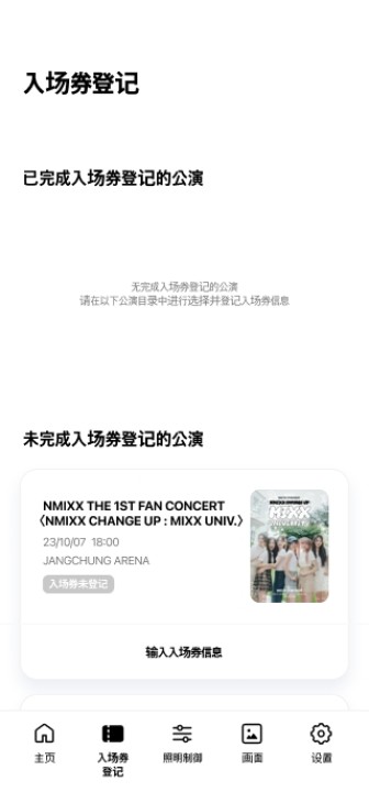 - 输入入场券信息完成登记,即可让应援棒在NMIXX公演时自动跟随舞台表演运行。