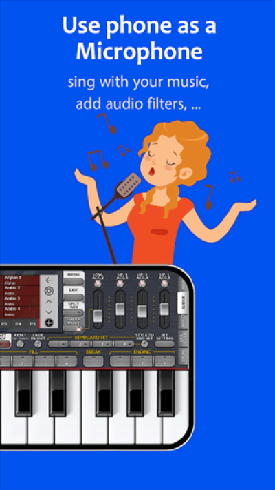 通过USB MIDI连接实体音乐键盘,或用手机麦克风录制音频并实时添加滤镜效果。