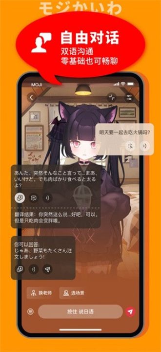 全新Live2d形象登陆 MOJi会话 App,独特的人设让每次对话都充满乐趣和惊喜,日语口语学习不再单调!拜托,24h全天候陪聊欸!还怕没人陪练口语吗!