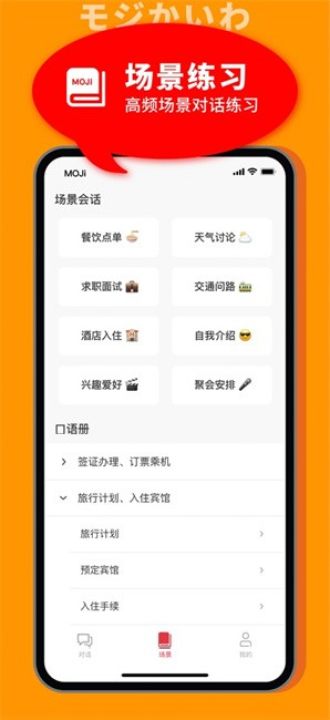 MOJi会話根据「日常用语」不同生活工作学习场景,全面而细致地展开,为您的口语预演,提供各种可能的语料。目前收录了上千条常用语,持续更新中。