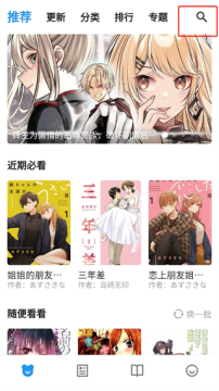 1、打开应用后可通过搜索功能快速定位想看的漫画。