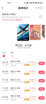 2、选择一个你想要购票的电影,点击进入购票页面;
