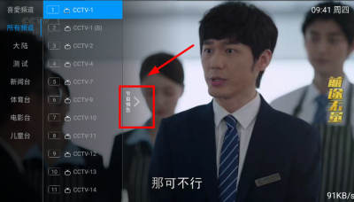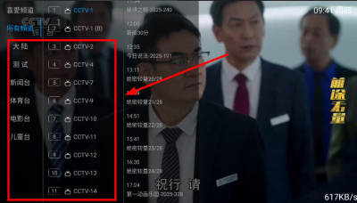 3、点击左侧即可调出频道切换,下滑找到更多频道;