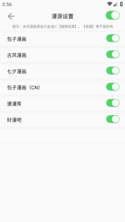 3、有多种漫画源可以选择,点击后方的按钮即可开启或关闭漫画源