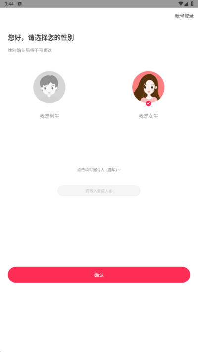 3、根据真实情况选择性别,注意,性别选择后不可更改哦;