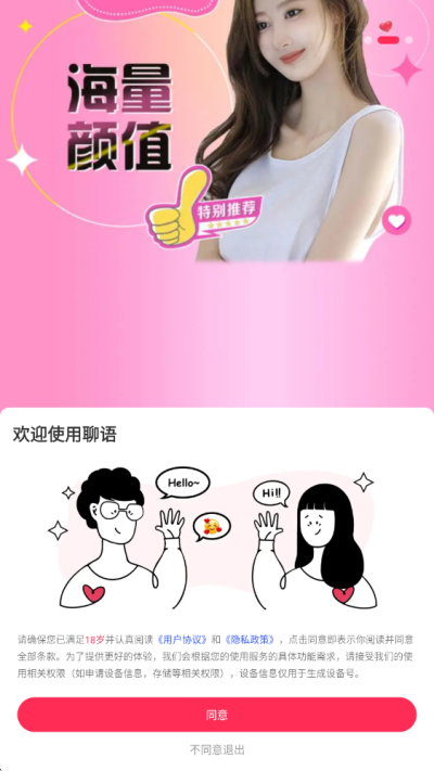 聊语交友软件内置丰富简单的聊天交友娱乐活动,涵盖多种全新有趣的缘分聊天玩法,让用户轻松开启社交互动,同时提供丰富的交友话题,支持附近恋爱沟通,帮助用户获取欢乐社交乐趣,是一款品质出众的缘分交友助手,喜欢的用户可体验使用。