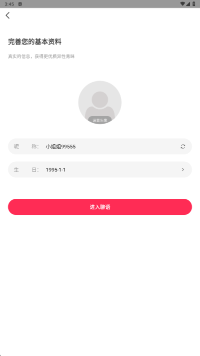 2、免费使用门槛低:作为免费版 APP,核心社交功能均免费开放,用户无需付费即可体验丰富的聊天交友服务、娱乐活动与缘分玩法,大幅降低社交门槛,让更多用户能轻松享受优质社交体验。