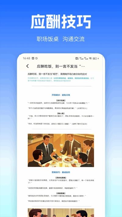 3、应酬频繁人群:经常参与商务会面、朋友聚餐等应酬场景,担心氛围尴尬或不知如何开启话题的人,应酬助手功能能提供话题与话术支持,助力营造良好交往氛围。