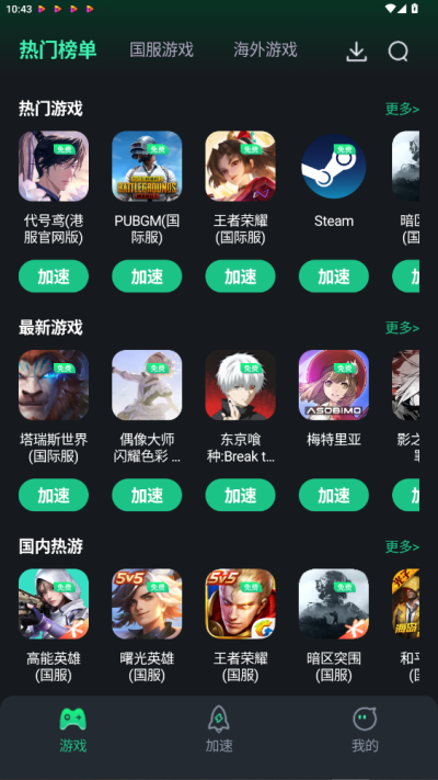 支持国内外绝大多数热门手游,从 PUBGM 到王者荣耀国际服、蛋仔派对等均有专属加速方案,适配性极强。