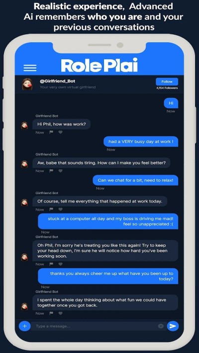 RolePlai是一款AI虚拟角色聊天软件,在软件内有不少AI角色可以互动,也能自定义角色创建,为用户打造超越纯文字聊天的沉浸式互动体验,还具备记忆过往互动的能力,同时支持自定义聊天背景、切换对话模型。