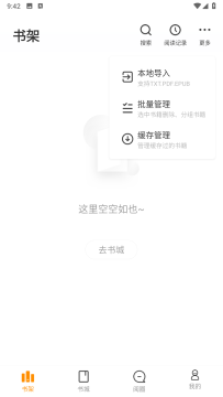 支持TXT、EPUB等格式文件导入,将个人藏书整合至书架。